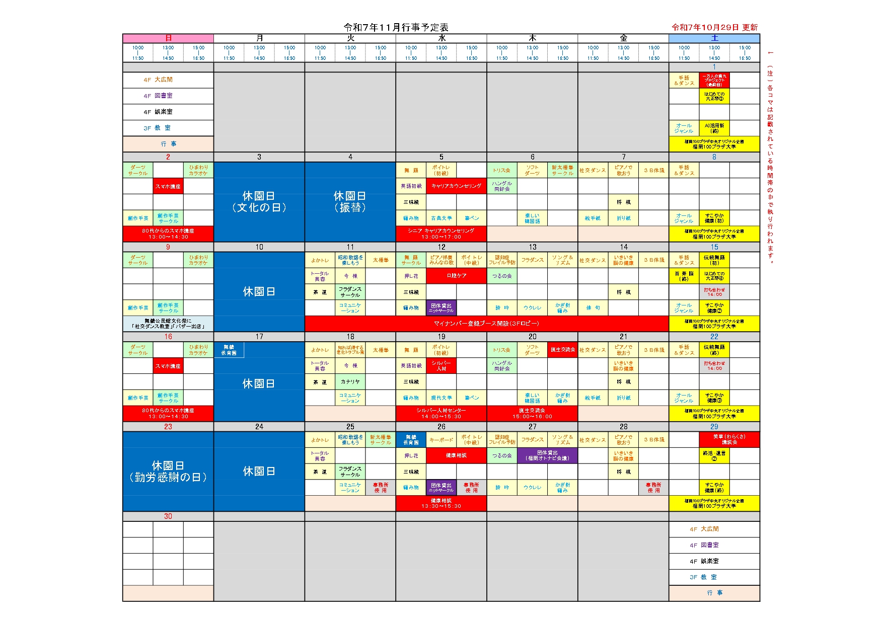 ■11月のイベント&相談のご案内 令和7年10月29日更新